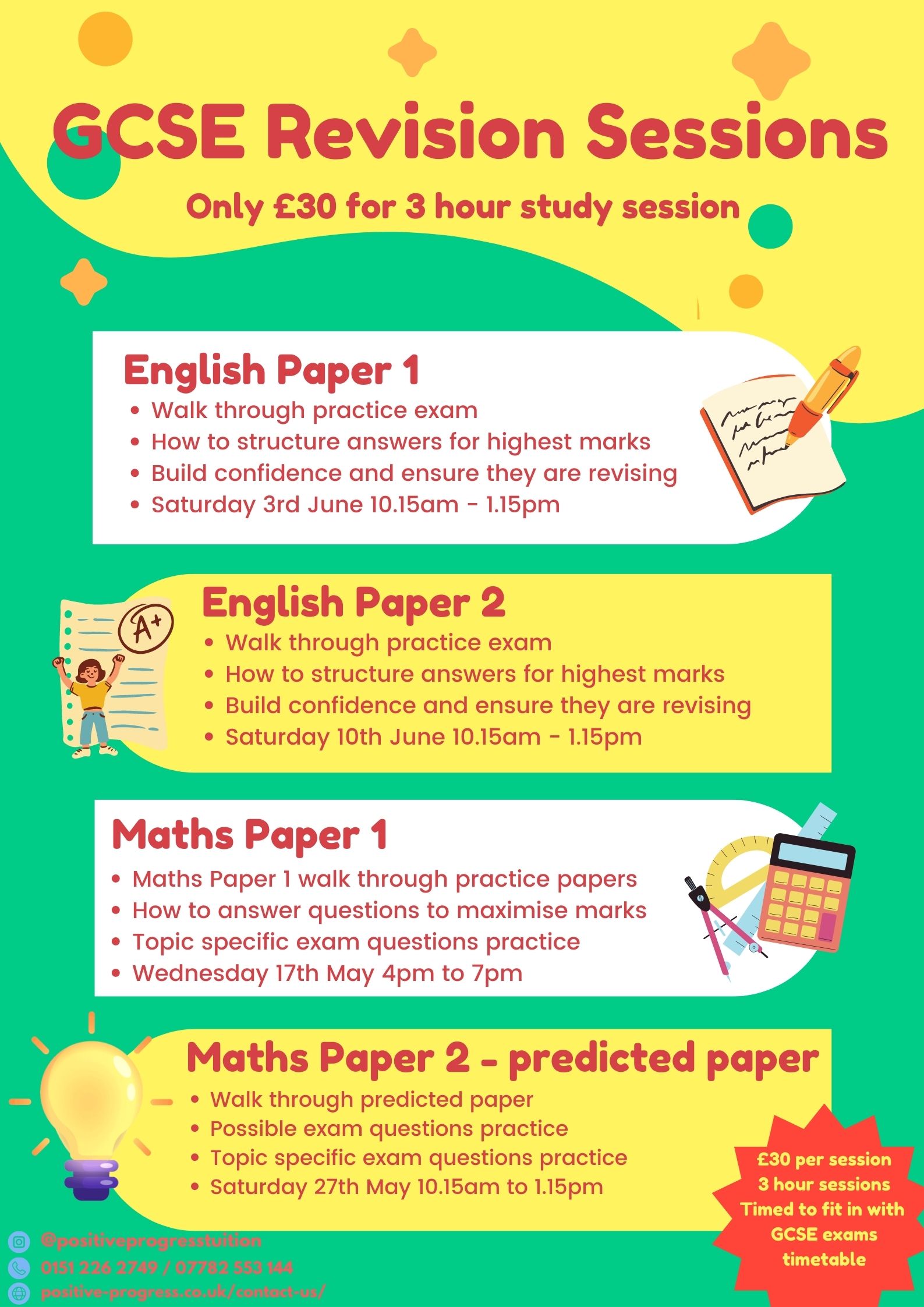 We still have a few places available on our GCSE Pre-Exam Study Sessions. Follow the link below to book and reserve your place: https://positive-progress.co.uk/pay-fees/